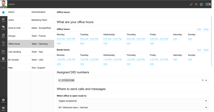 Bestes Praxisbeispiel hierfür ist 3CX selbst! Das eigene Telefonsystem wurde zu komplex und aufwendig in der Verwaltung. Also hat 3CX separate Gruppen für jedes Vertriebsteam eingerichtet und diese effektiv konfiguriert. Nun haben deren verschiedenen Standorte eigene IVR sowie eigene Zeitzone und Geschäftszeiten. Außerdem haben sie die Gruppenverwaltung an Administratoren oder Manager bestimmter Büros und Abteilungen delegiert. Das Ergebnis? Eine Reduktion der Verwaltungszeit um etwa 300 %.
